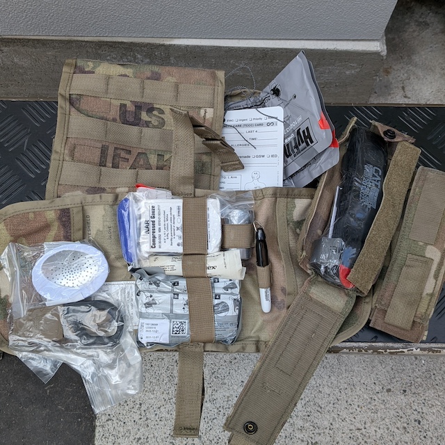 米陸軍で採用されている個人携行用の救急キット「IFAK II」のセット内容をご紹介いたします。